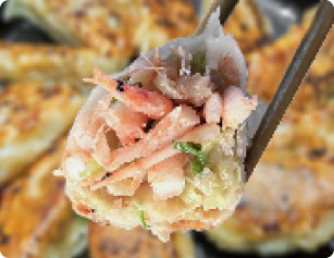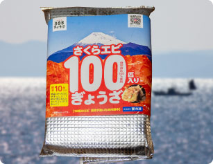 駿河湾の豊かな恵みをぎょうざ1つに10匹を包みました。1パックに100匹入りで、